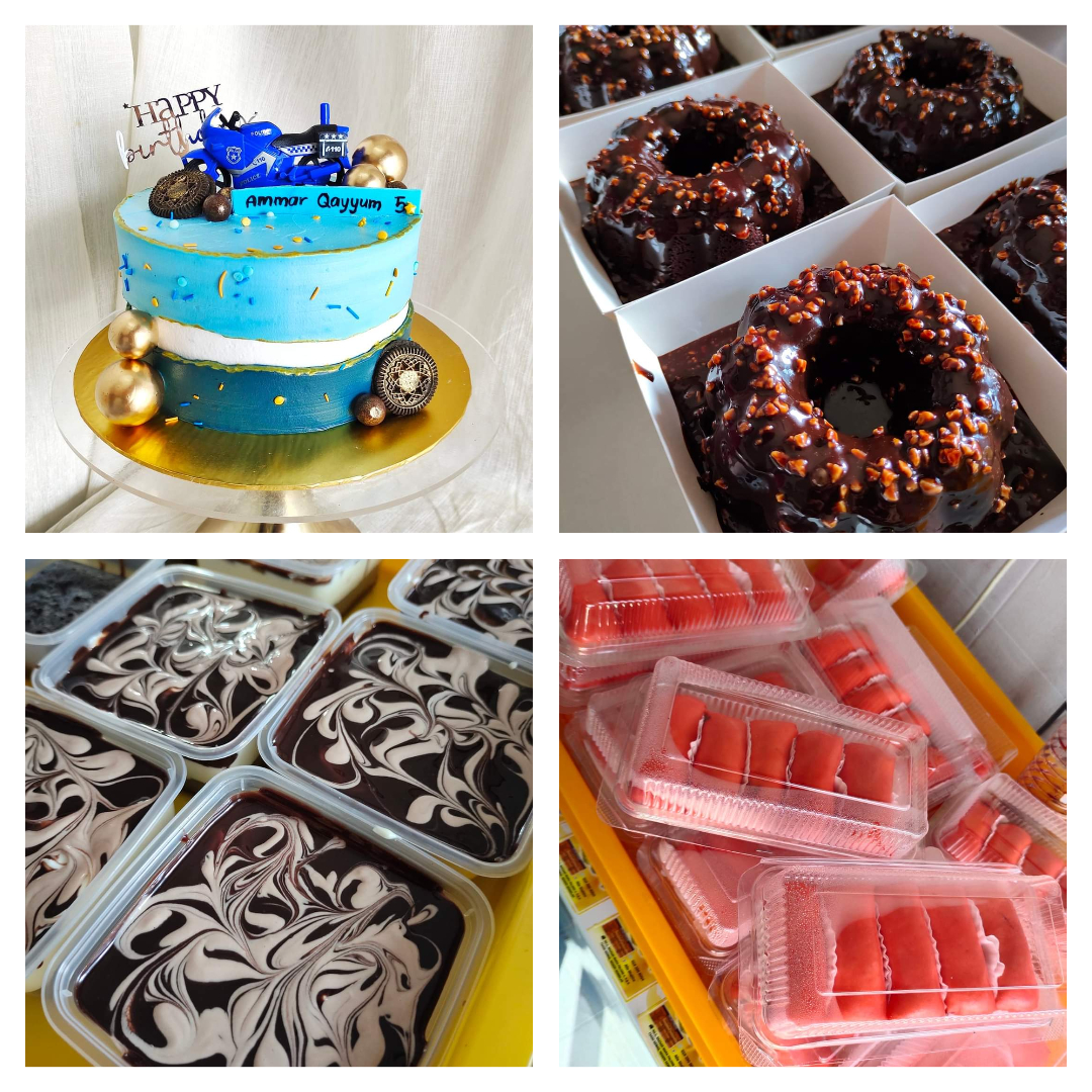 Jenis Perniagaan : Aneka Kek & Manisan Pengusaha : Puan Alia Shahira Lokasi : Pusat Bandar Palong 4,5,6 Facebook : Alia Shahira