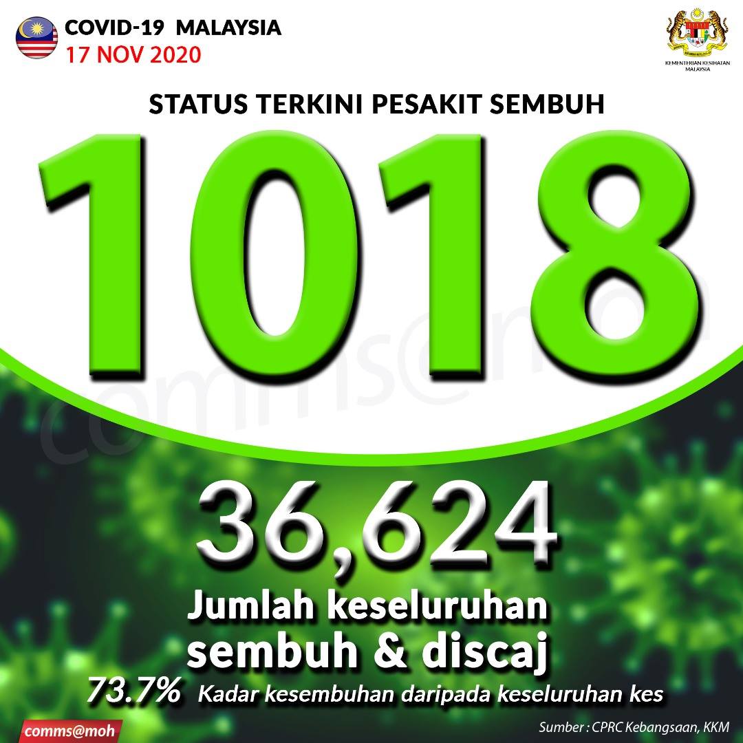 Status Terkini COVID19, 17 Nov 2020 Kes sembuh=1,018 Jumlah kes sembuh=36,624 kes Kes baharu positif=1,210 kes (kes import=19, kes tempatan=1191) Jumlah positif=49,730 kes Kes kematian=5 Jumlah kes kematian=318 kes Kes dirawat di ICU=105 kes Bantuan Alat Pernafasan=40 kes #covid19 […]