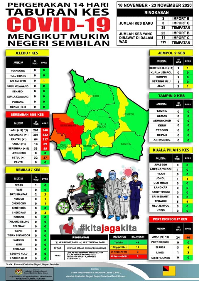 SITUASI COVID-19 DI NEGERI SEMBILAN (23 NOVEMBER 2020 @ 12.00 Tengah Hari) Sehingga 23 November 2020, jam 12.00 tengah hari, terdapat 41 KES BARU Positif COVID-19 dilaporkan ke Crisis Preparedness and Response Centre (CPRC) Jabatan Kesihatan Negeri, Negeri Sembilan, menjadikan […]
