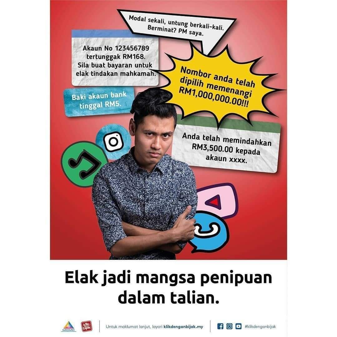 Sentiasa berwaspada semasa menjalankan sebarang transaksi dalam talian dan pastikan daripada sumber yang sahih. Jom Klik Dengan Bijak! #KlikDenganBijak #MCMC #PenipuanDalamTalian #ScamAlert