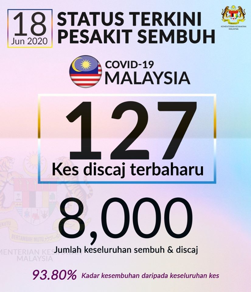 Terkini Covid-19, 18 Jun 2020 127 kes discaj dilaporkan hari ini, menjadikan jumlah kes discaj adalah sebanyak 8,000 kes. #covid19#dudukrumah#stayathome#mcmc#pusatinternet