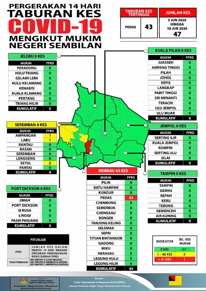Sehingga 15 Jun 2020, jam 12.00 tengah hari, terdapat 32 KES BARU positif COVID-19 dilaporkan ke Crisis Preparedness and Response Centre (CPRC) Jabatan Kesihatan Negeri, Negeri Sembilan, menjadikan jumlah keseluruhan kes COVID-19 sebanyak 989 kes. Dari jumlah tersebut, sebanyak 294 […]