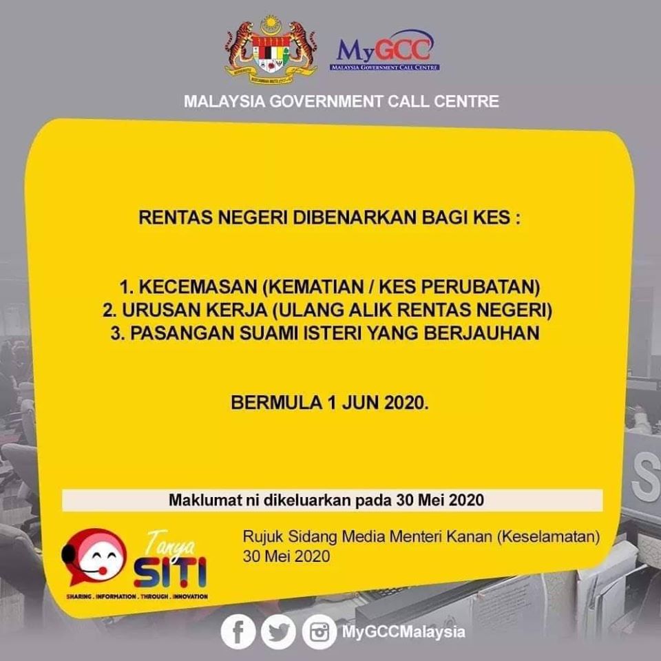 BERMULA ESOK 1 JUN 2020 – RENTAS NEGERI DIBENARKAN BAGI KES : Jangan ingkar! Terus patuhi PKPB yang telah ditetapkan. #COVID19#SKMM#PusatInternet#PiNegeriSembilan#PiKlusterJempol#stayAtHome#staySafe