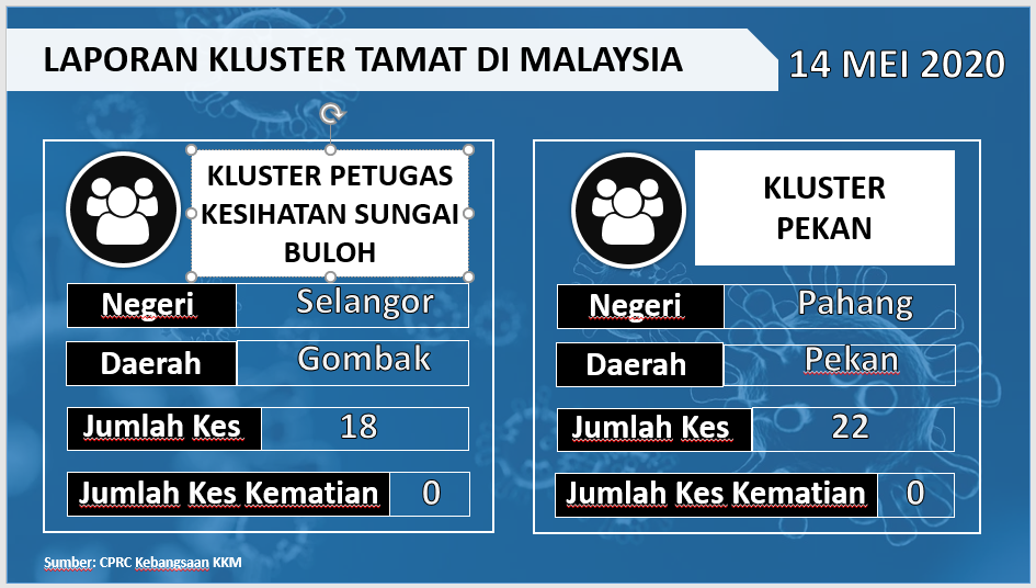 Dua (2) kluster yang telah ditamatkan adalah: 1. Kluster Petugas Kesihatan Sungai Buloh– Kluster ini merekodkan sejumlah 18 kes dan tiada kes kematian.2. Kluster Pekan– Kluster ini merekodkan sejumlah 22 kes dan tiada kes kematian. Jumlah kluster yang telah ditamatkan […]