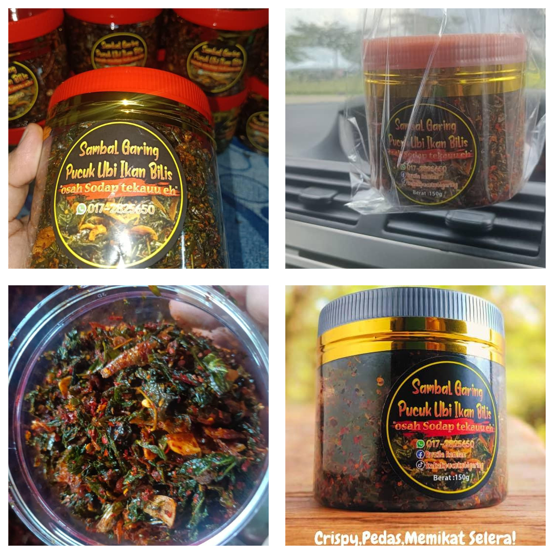 Jenis Perniagaan : Sambal Garing Pucuk Ubi Ikan Bilis Pengusaha : Ruzila Binti Ramlan Lokasi : Pusat Bandar Palong 4,5,6 Facebook : Ruzila Ramlan
