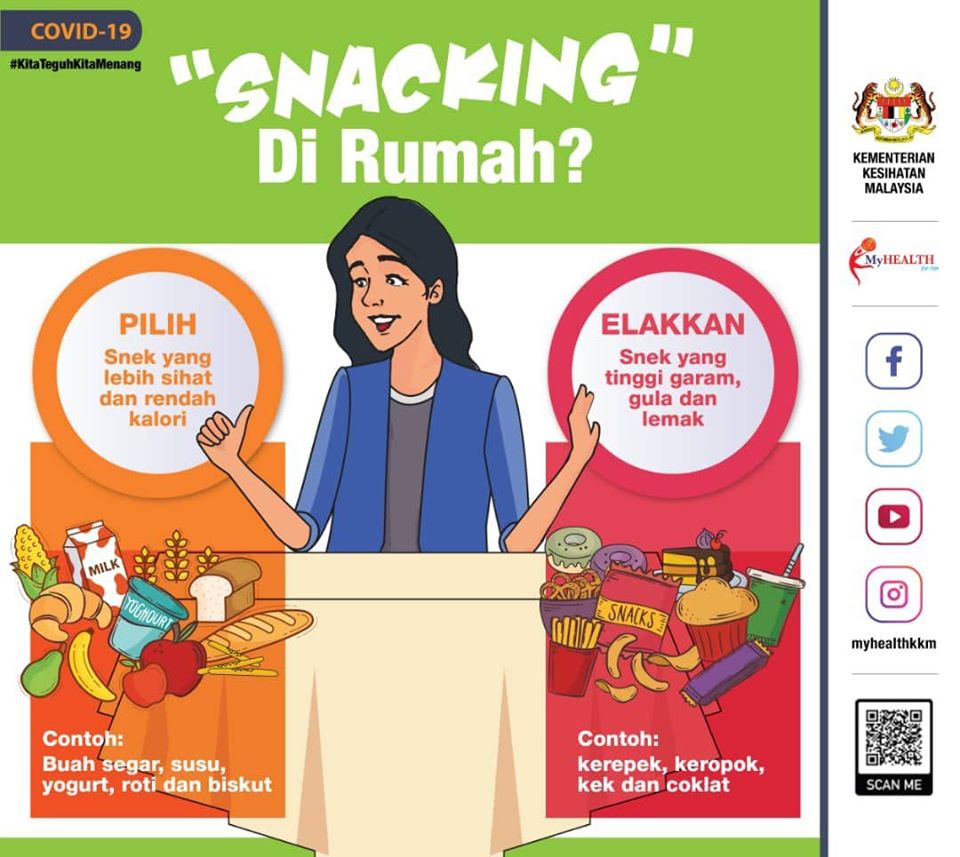 Pastikan snek yang dipilih adalah snek sihat seperti buah-buahan dan elakkan snek yang tinggi garam, gula dan lemak. #COVID19#SKMM#PusatInternet#PiNegeriSembilan#PiKlusterJempol#stayAtHome#staySafe