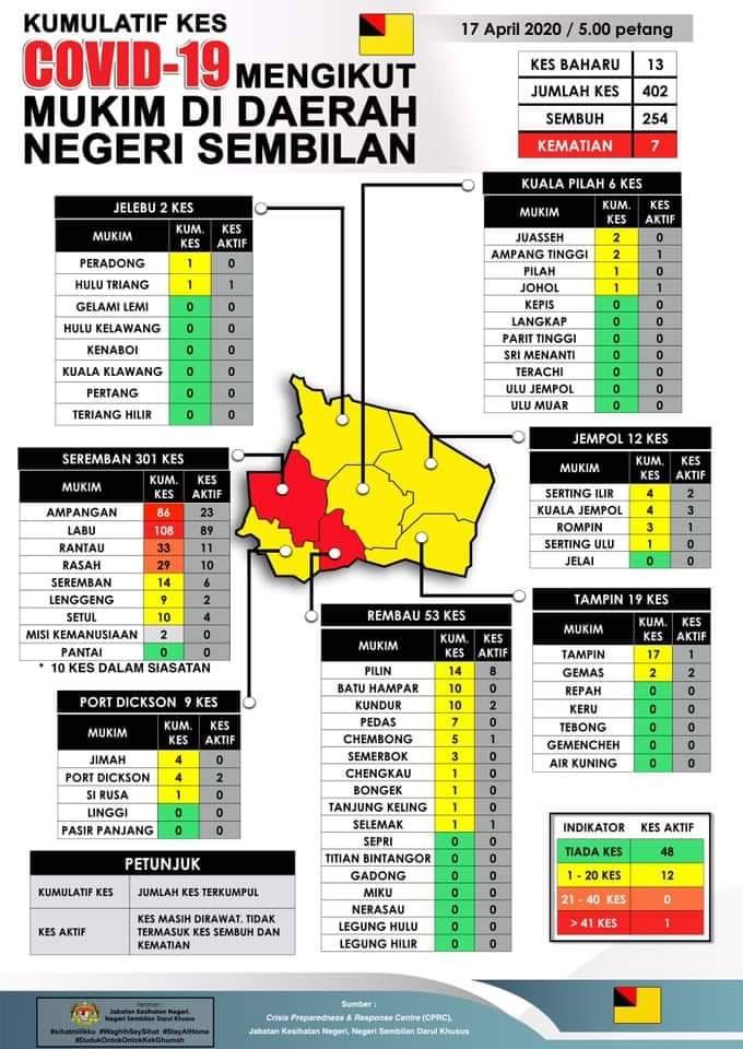 Covid 19 Di Negeri Sembilan13 kes baru direkodkan 17 April 2020 #COVID19#SKMM#PusatInternet#PiNegeriSembilan#PiKlusterJempol#stayAtHome#staySafe