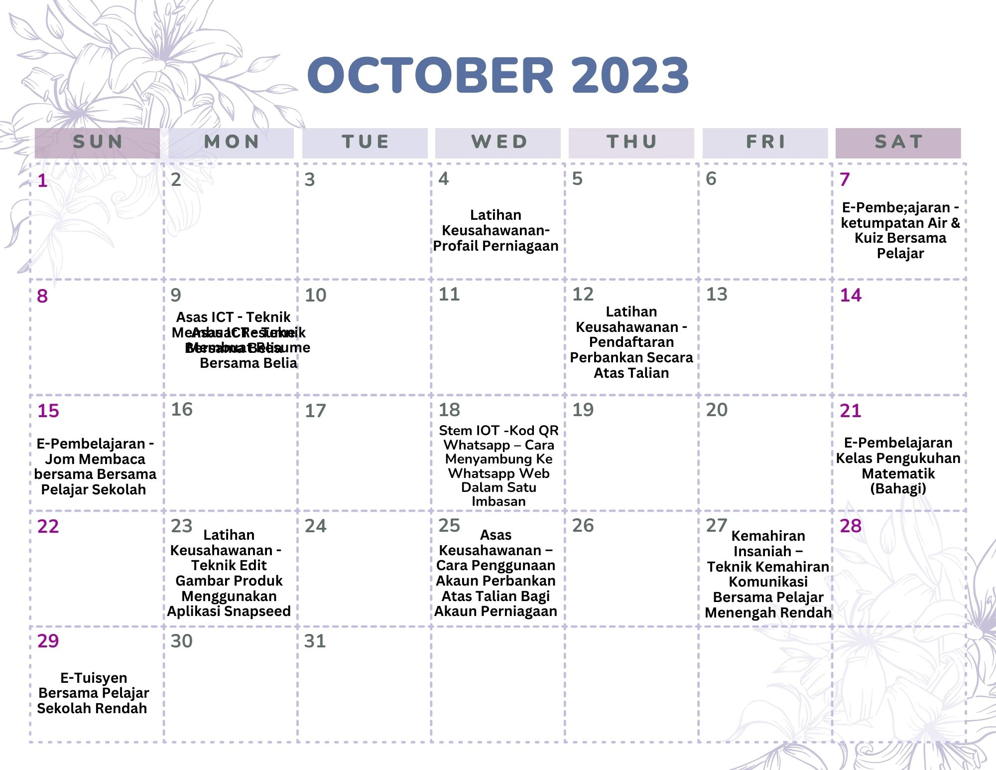 Jadual Aktiviti Oktober 2023
